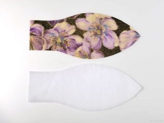 - After two large and two medium canvases are ready, details of the top of the bag are cut out of them. In addition to the base, you need to cut the lining and the seal according to the templates. To fix the synthetic winterizer with the base fabric, you can use special glue in the form of a spray. In order for the product to keep its shape well, finished canvases are usually duplicated with an adhesive pad.