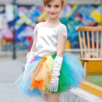 The smallest girls, along with a tutu skirt, put on a bodysuit or T-shirt. You can combine the most different tops for older older beauties with such a skirt - tops, turtlenecks, shirts, blouses, t-shirts and other options. You can wear such a translucent skirt with both tights and leggings.