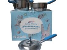 - "Miniature" is a set of mirror-polished stainless steel cookware designed for cooking small portions. It includes pots from 0.5 to 0.8 liters and pans 0.25 and 0.5 liters.