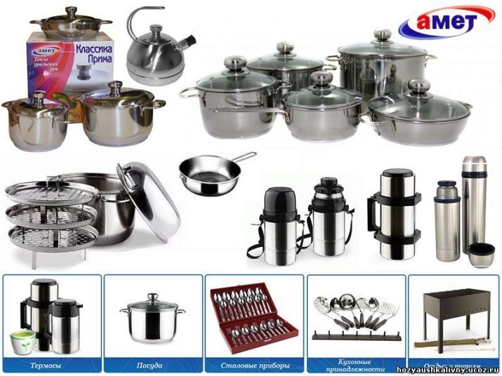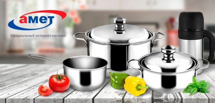 Practical tableware "Amet" is very popular in Russia and neighboring countries. Its high technical characteristics and affordable prices allow the use of dishes in the home kitchen, as well as in catering establishments.