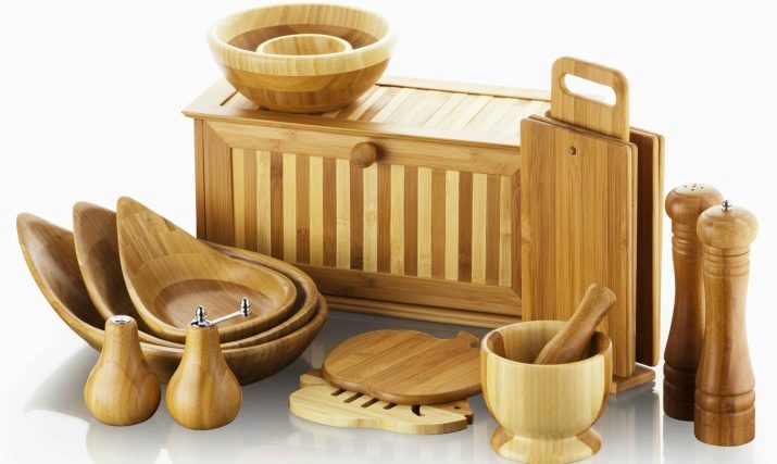 In specialized stores, there are dish dryers, jars for storing bulk products, thermoses and even double boiler. You can choose several items from bamboo in a set as a gift for your loved ones and loved ones.