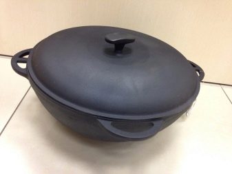 Cast iron cookware with a flat bottom is also suitable for glass ceramics. For example, a cast-iron pan with the most even bottom will differ in thick walls. In such dishes, heat is stored longer, food is cooked more efficiently.