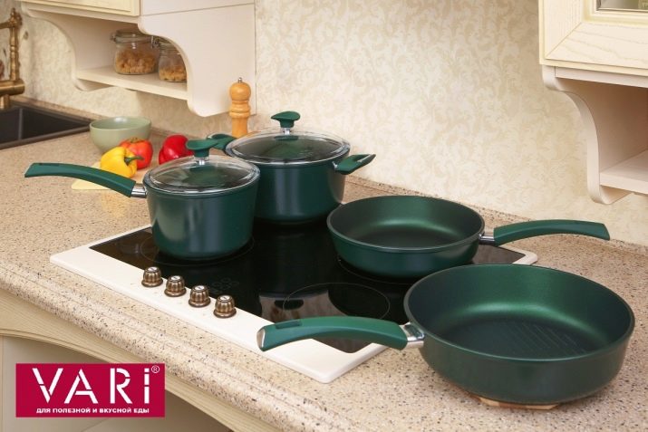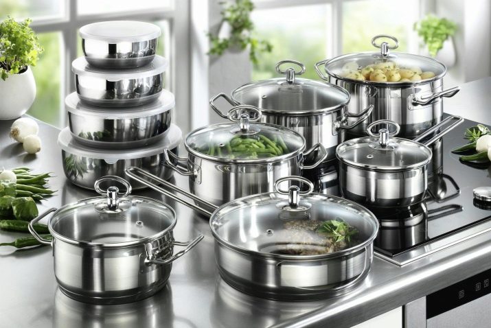 Stainless steel cookware is wear-resistant, durable, lasts a long time. There are sets of various forms on sale, but they do not differ in a variety of color schemes. The main advantage of this type of product is easy care.