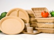 Bagasse (sugarcane) is used for this dish, which is crushed, squeezed juice, boiled, poured into molds and dried. Finished products have excellent strength, tolerate both freezing and heating in the microwave, decompose in soil in 5 months. The main disadvantage is poor resistance to liquids (no leakage is guaranteed for 4 hours).