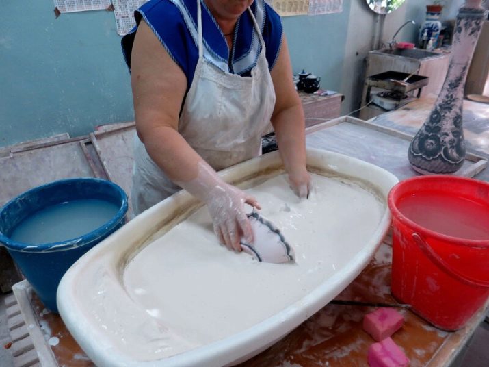 At the second stage of making faience, the masters have to give the mass a shape, and then burn it. Porcelain is given shape thanks to gypsum, followed by thorough drying. And only after drying porcelain is fired, using special ovens for this, the temperature in which should be strictly controlled.