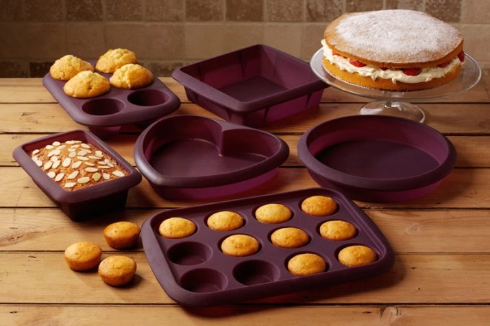For baking cupcakes, silicone molds are also used, which can be presented in the form of a kind of baking sheet, designed for the above number of cakes, as well as independent elements according to the example of paper forms.