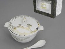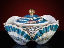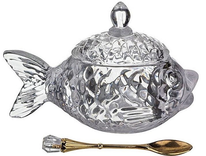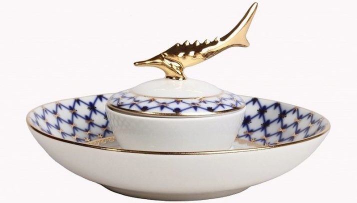 A model of unusual design can become a real decoration of the table. In the shops you can find products in the form of fish (for example, beluga or sturgeon), whale, swan, shells, mini-bucket or barrel, etc. There are a lot of offers. For example, the Imperial Porcelain Factory offers a model in white and blue with an original cover.