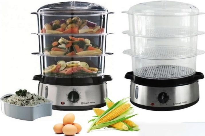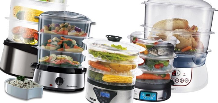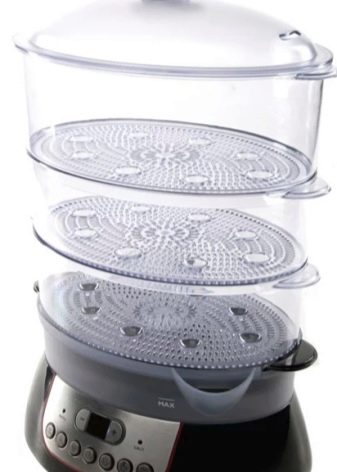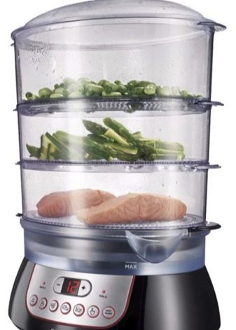 Devices in several tiers are very popular, allowing you to cook more food or different foods at the same time. At the same time, do not forget that the lower tier is steamed more intensively, therefore, the cooking time is reduced. The modern range of double boiler is diverse. They differ in shape: