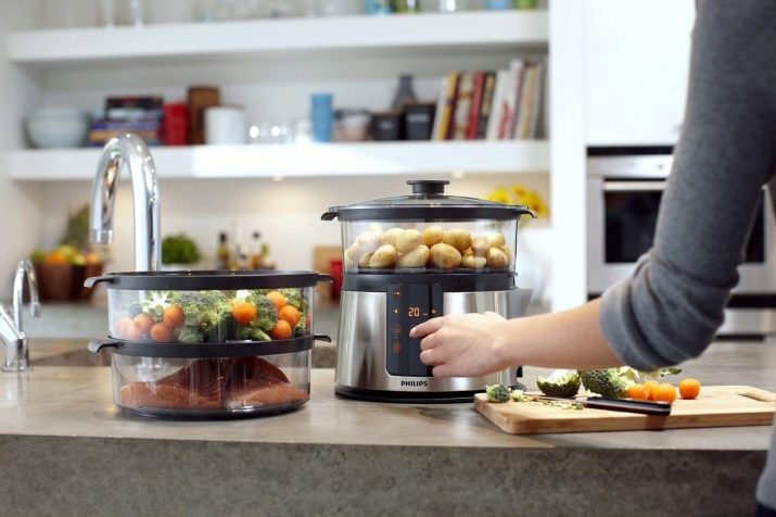 Also, devices differ in the number of tiers. There are devices with a minimum number of compartments, but more functional with several tiers. They allow you to cook at one time a side dish and poultry, fish, meat.True, in this case it is necessary to take care of such an addition - like pallets, otherwise the products will be saturated with each other's smell and juice. Another way to split the double boiler is mobility. Most appliances are desktop, stand-alone, but there are also built-in models.