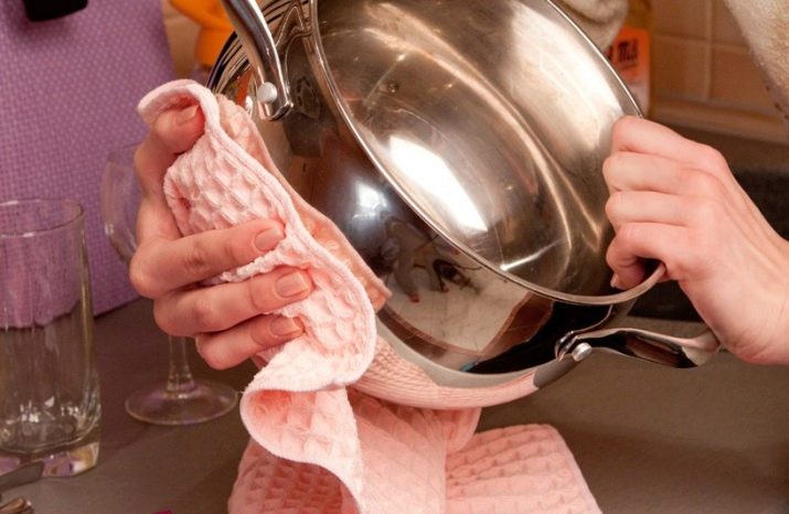It is not recommended to use powders and iron brushes, which can damage the surface and affect the gloss. It will be useful to purchase special formulations designed to care for stainless steel utensils.