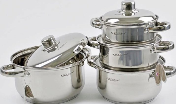 Mistresses can purchase pots in a set. They look like “nesting dolls” and take up very little space in the kitchen, which is an important factor. Such models as "Nika", "Alta", "Gretta", "Lira" and the like are highly appreciated. They are distinguished by the presence of a transparent glass cover. Handles are connected to the body with rivets. Be sure to have a steam exhaust system.