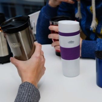 If we talk about thermocups, it is better to choose them with double walls. To keep the warmth of the drink during, for example, a conversation, the presence of heating does not hurt.
