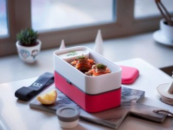 Some of the varieties of lunch boxes can be heated in the microwave, which is especially convenient for those who want to transfer not only snacks and snacks, but also full-fledged complex lunches to containers. Also, the advantages include ease of use.