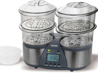 The simplest designs are equipped with only one tier. More complex fixtures, especially professional ones, are from 2 to 5. The outer diameter is 24 - 28 cm. The vast majority of mantissa are made of aluminum alloys or stainless steel. The top cover can be made both metal and transparent (based on heat-resistant glass).
