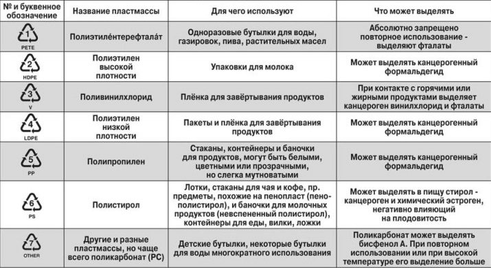 What designations should be looked at when buying, and what type of plastic this or that sign speaks of - we will consider below.