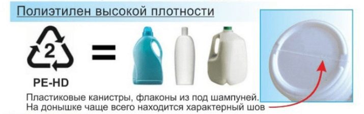 - Number 2 (LDPE) - since this polyethylene has a high density, it is often used a second time, although its degree of safety is considered conditional.
