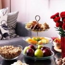 If you prefer to eat in the room, you can use a large serving plate as a tray. So you will immediately take away from the kitchen several types of snacks and you can choose according to your mood what to eat first. Multi-tiered scissors can be useful in the design of the kitchen space. For example, you can put it on the table and nicely put the fruit on it. At the same time, you do not overload the space, but, on the contrary, decorate it with an exquisite decor item.