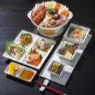 You can serve salads in such dishes. In this case, the lids can be removed before starting the meal. Sometimes lids cover only individual cells, for example, containers with sauce.