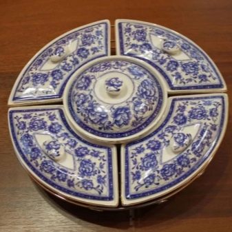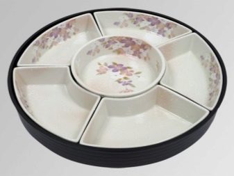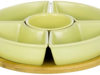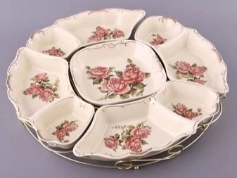 Modern manufacturers offer porcelain and ceramic sectional dishes, wooden structures, glass and crystal objects. There are expensive elite models for festive feasts, and budget plastic options for giving. Some manufacturers produce entire services with similar elements.But most often, such dishes are sold separately. Consider the variety of assortment in more detail.