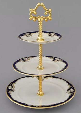 Very convenient models with several tiers. These are peculiar whatnots, each step of which consists of several sections. Even a two-tiered dish can accommodate a much larger number of snacks than a regular plate. Moreover, it will take exactly the same amount of space. Today on sale there are pyramids of 3, 4, and even 5 tiers. For festive feasts, they are perfect. As a rule, multi-tier models are built on the principle of herringbone.