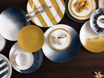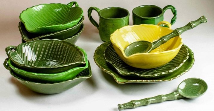 In the spring collections, the most fashionable colors are mint, aqua, blue, green. These shades of dishes are in perfect harmony with both vegetables and herbs on a plate, and with flowers on the table. Also plates of various shapes, while creating a single service, can be obtained if one type of pattern is used, but presented in different modifications on each item in the set.