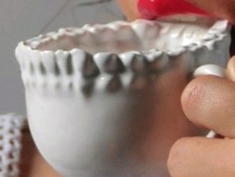 However, designers can surprise not only with color, but also with an unusual shape. Playing with volume can turn a cup into a small bas-relief.