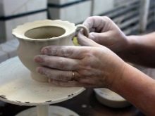 - Next, the workpiece is placed in a rotating gypsum form: with a sponge, the master presses on the soft inner walls of the workpiece, so the relief and matrix structure are transferred to it. Using this technique, cups, bowls, teapots, jugs and other utensils are created.