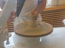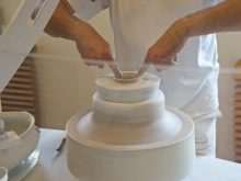 - To this day, potters take part in the creation of Meissen masterpieces, they drive the potter's wheel with their feet. Wet palms of the master grab the workpiece, which rotates on a circle, the surface is cleared to uniformity. After that, the master can manually change the shape of the product.