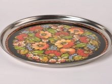 - Trays used as decorative ornaments. They can have various bizarre shapes and hang on the wall or stand on a chest of drawers. Traditionally, in every house you can find wicker, metal (stainless steel) or a wooden tray with painting (Khokhloma). The tray-plate on a soft pillow, gzhel and a rotating (spinning) option look unusual in the interior of the room. Extravagant are considered square and octagonal trays or combined models, as well as painted and decorated with bizarre patterns.