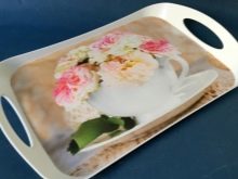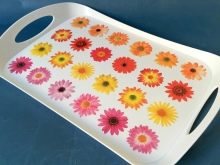 - The original design. Since plastic can take on a different look, it can be painted in any color. Often manufacturers of trays apply floral patterns and beautiful ornaments to their surface, which cannot be done with metal products (they need to be covered with a thick layer of paint, and such decor will last only a few weeks). You can not decorate aluminum trays in this way, since after painting there may be problems of constant oxidation. Plastic trays, however, open up wide possibilities for the implementation of any design idea.