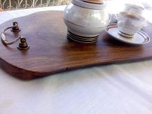 - Hevea. From wood, people learned not only to get rubber, but also to make stylish trays. Its wood is characterized by low humidity, which does not exceed 10%, and a smooth, even surface with a warm shade. Hevea products are highly durable and last a long time. In addition, such trays are pleasant to the touch, do not absorb extraneous odors of food and moisture, are not afraid of high temperature.
