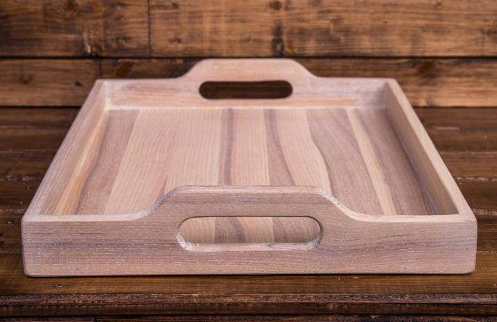 - Acacia. It is an exquisite tree that hails from southern countries. It is characterized by a delicate aroma and delicate warm color. Acacia trays are often decorated with paintings.