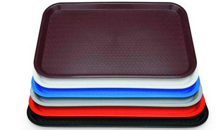 Trays are a universal device with a flat surface and special sides (raised edges), which greatly simplifies the transportation of various types of dishes and protects them from falling.