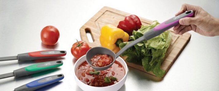 - Model Gipfel 6479 Tramonto made of environmentally friendly material - nylon, and weighs only 100 g. The product can be placed in a dishwasher, is available in different colors and has dimensions 10x34 cm. The handle of the scoop is made of rubberized plastic, preventing it from heating up from hot liquids. Such a cook costs 310 rubles.