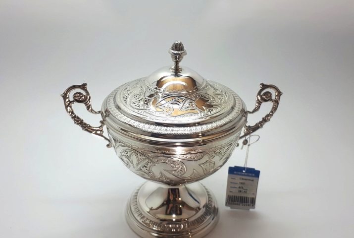Such a silver sugar bowl is distinguished by its complexity and sophistication. It will be the decoration of your table and will last a long time.