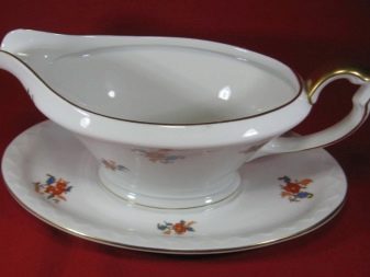 In shape, you can designate gravy boats that have a leg. A small leg will raise a low sauce boat, preventing it from getting lost on the table among many other dishes. The legs can be decorated with paintings and other decorative elements. The dish legs also have a more practical function - it helps to completely isolate the product from other dishes that are hot, wet or cold.