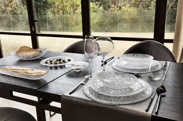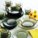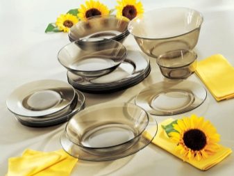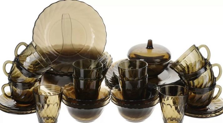 Among them, Luminarc can again be mentioned, as well as SV Glass Industry, Pasabahce. On sale you can find very simple sets with small items that have grooved edges. Plates of this kind, plates, glasses and glasses, tureens and teapots will easily become a decoration for any feast - it doesn’t matter if they are made of black or brown glass.