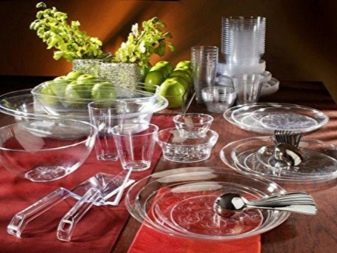 Plain glass utensils are bottles for drinks or cans. Cookware made of heat-resistant glass - these are different-sized sized pots and pans, which can be purchased for restaurant kitchens and used in domestic conditions, various forms of roasting pan and beautiful forms for baking food. Cutlery differs in the nature of the glass used, methods of production, the nuances of decor.