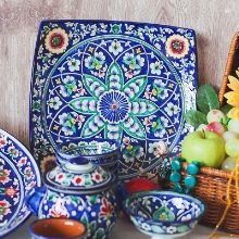 In total, there are over 80 varieties of such dishes. Rishtan ceramics is not far behind. The products of this company are distinguished by brightness and beauty. She really embodies the ideal of traditional Uzbek dishes. The painting is always carried out the same way, which allows you to choose services from individual components without any problems.