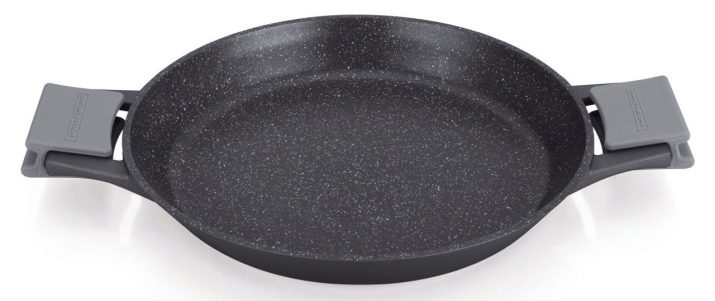 Such a pan heats up quickly and evenly. Meat and fish, as well as other products containing fat, can be fried without oil. If you choose a high-quality model, then it will definitely last longer than analogues with ceramic or Teflon non-stick layers. However, utensils with stone protection are more expensive. She is afraid of sudden temperature changes, not all models can be washed in a dishwasher.