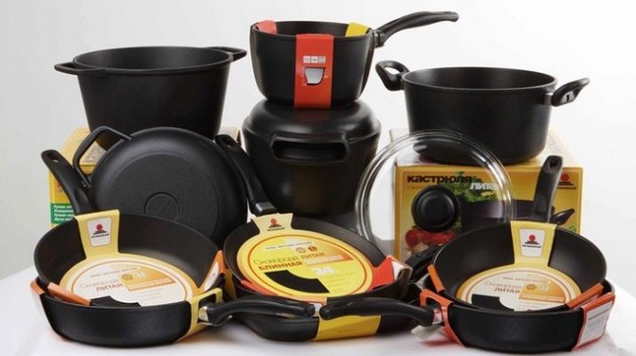 Under this brand, a domestic manufacturer has been producing cast iron and aluminum cookware with various types of coatings for more than 10 years. Deep stew-pans, crepe makers and cast roasters are very popular with hostesses. Pans from this manufacturer are equipped with wooden or silicone handles with a removable mount, which allows them to be compactly stored and used in an oven. The advantages of the products include low cost, thickened bottom, beautiful design. As for the minuses, the thin ceramic layer deposited in the form of spraying quickly loses its properties and becomes thinner.