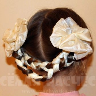 If you want to make a baby styling with elements of weaving a “basket”, then it is best to add a crown to it, then your princess will outshine everyone. In addition, different variations of the “basket” can be woven with bows for going to school on the First of September.
