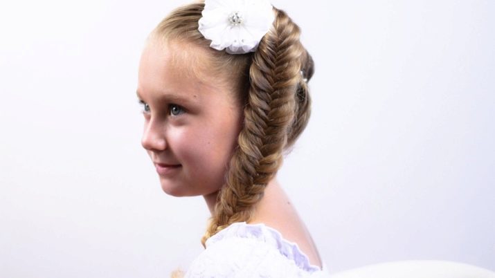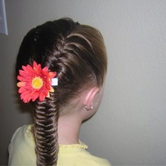 The fishtail looks very impressive on girls; it can be braided in literally 5 minutes. For this, the hair is thoroughly combed so that the locks can be easily separated, you do not need to comb the curls additionally - this will only confuse the delicate children's hair.