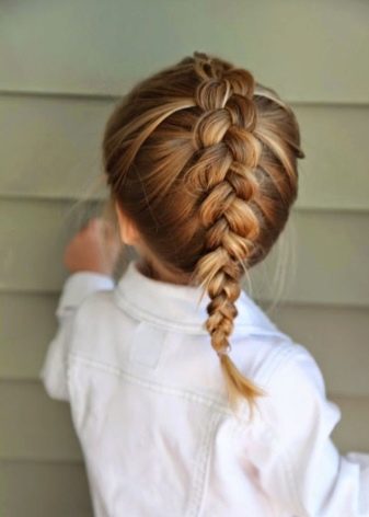 When choosing styling options for a 4-5 year old baby with elongated hair, it is imperative to be able to do styling that allows you to collect hair so that it does not get into your eyes, does not interfere with playing games and does not distract from other interesting activities. The most popular hairstyles are all kinds of braids - the most ordinary, French or spikelet. The French braid is an extremely simple way of weaving, every mother must be able to do it, since the technique is considered the basis for creating many other styles. The braid is weaved from three strands, carefully crossing them with each other and, as weaving, side curls are woven into them. Some people also call this hairstyle "dragon".