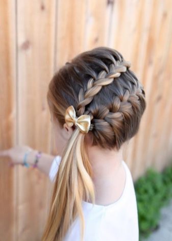 Little girls find it rather difficult to sit in one place for a long time, they constantly find interesting things to do and worries, so try not to put too much time on laying. Children, as a rule, lead an active lifestyle - they run, climb everywhere, conquering new peaks, therefore, it is desirable that the hairstyle be tight and be able to maintain its attractive appearance for several hours.