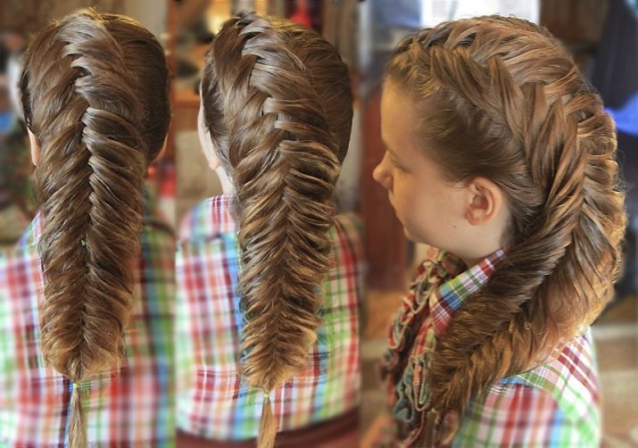 When creating a fishtail styling, try to capture as thin strands as possible, so the hairstyle will turn out to be more voluminous and sophisticated. With a great desire, such weaving can be varied and braid two braids on the sides.