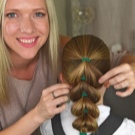 - Wrap the base of the tail twice with hair, make a voluminous loop, stretch and carefully fix it;