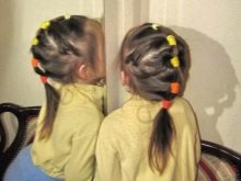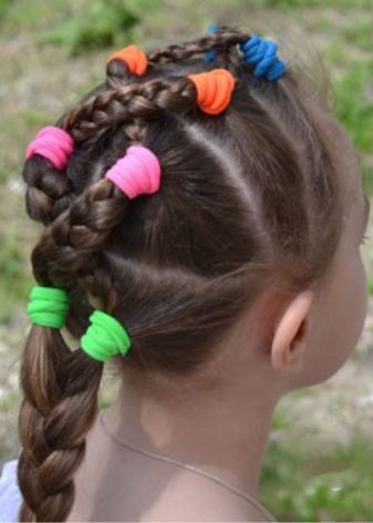 Children are very fond of bright hair accessories, but in this case, the main thing is to know the measure so that these elements do not interfere with the child during the day. The best decoration is soft elastic bands of different colors. They have a lot of advantages: