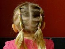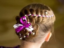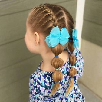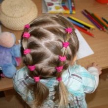 When creating a hairstyle for a little fashionista, do not forget to preliminarily discuss with her how she wants to see her styling and what accessories to decorate. Let it be even bright "children's" elastic bands of classic pink colors, with well-known cartoon characters, ordinary glass beads.