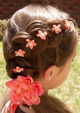 - It is not recommended to use many hairpins made of plastic and metal in a children's hairstyle, since these solid elements can cause a little discomfort to the girl when wearing a hat and during daytime sleep.